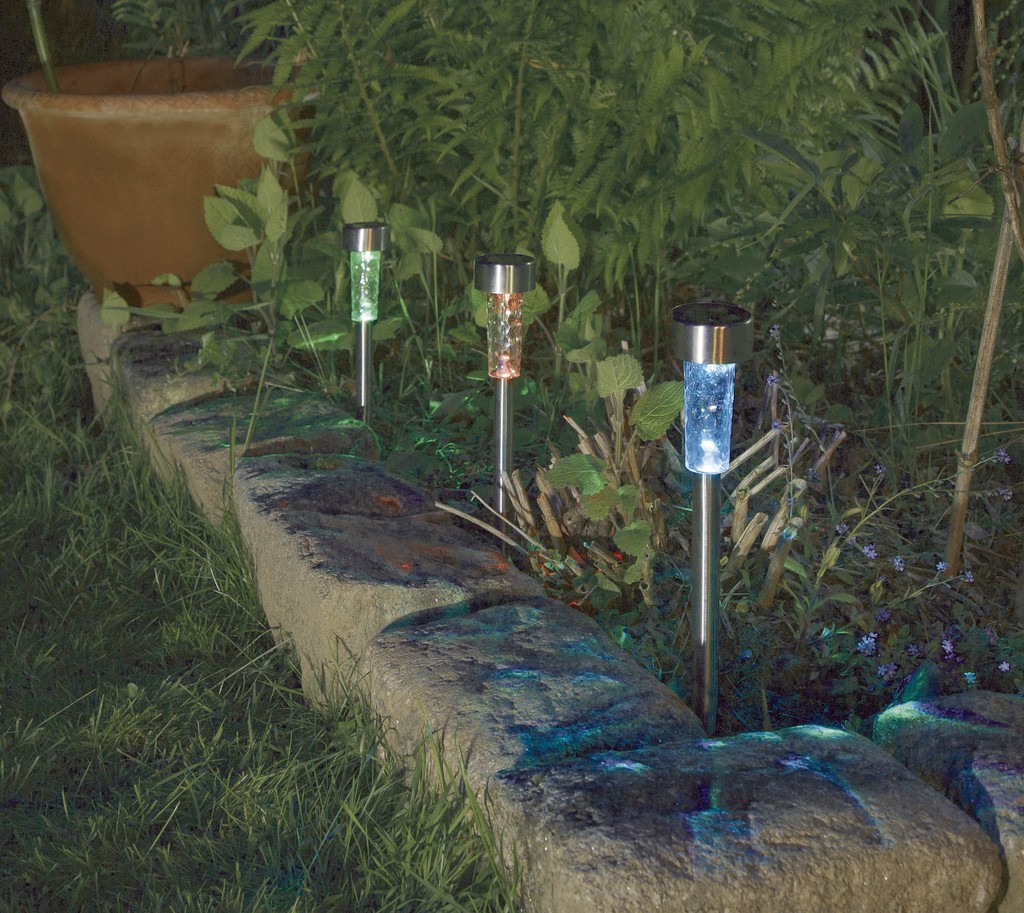 8 unités de balises solaires. Acier inoxydable et plastique. 1 changement de couleur. Panneau solaire 30 x 30 mm. Batterie rechargeable 1,2 V