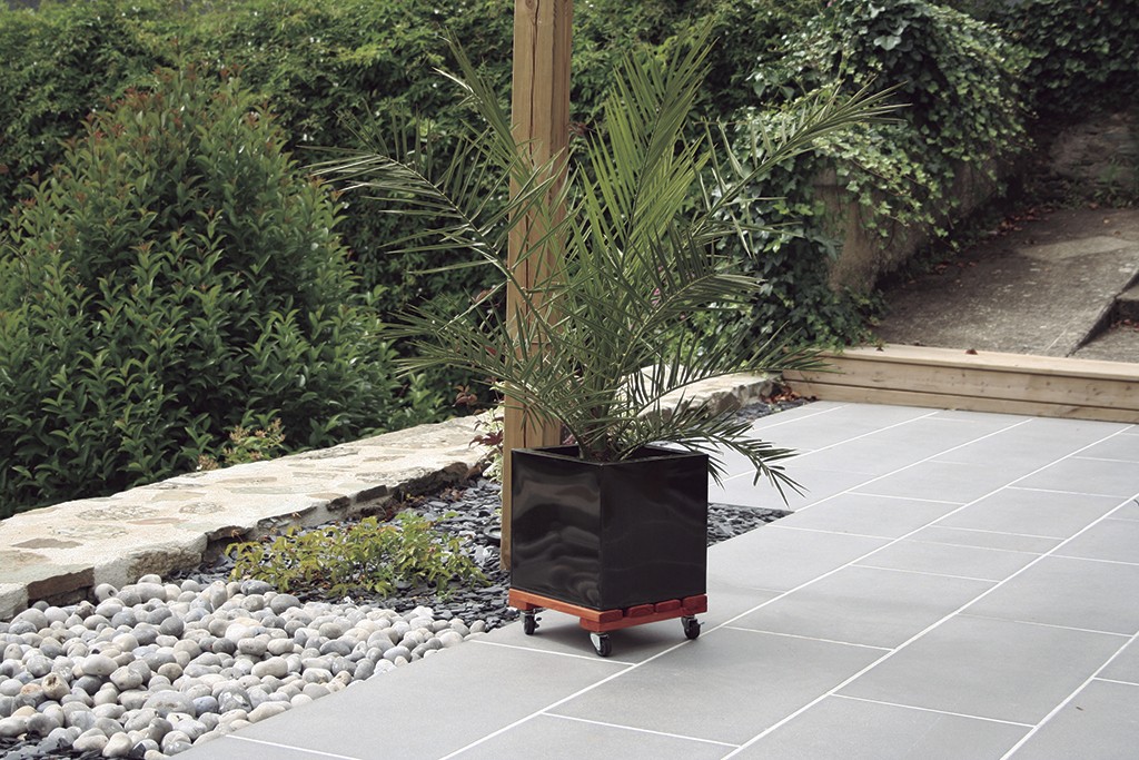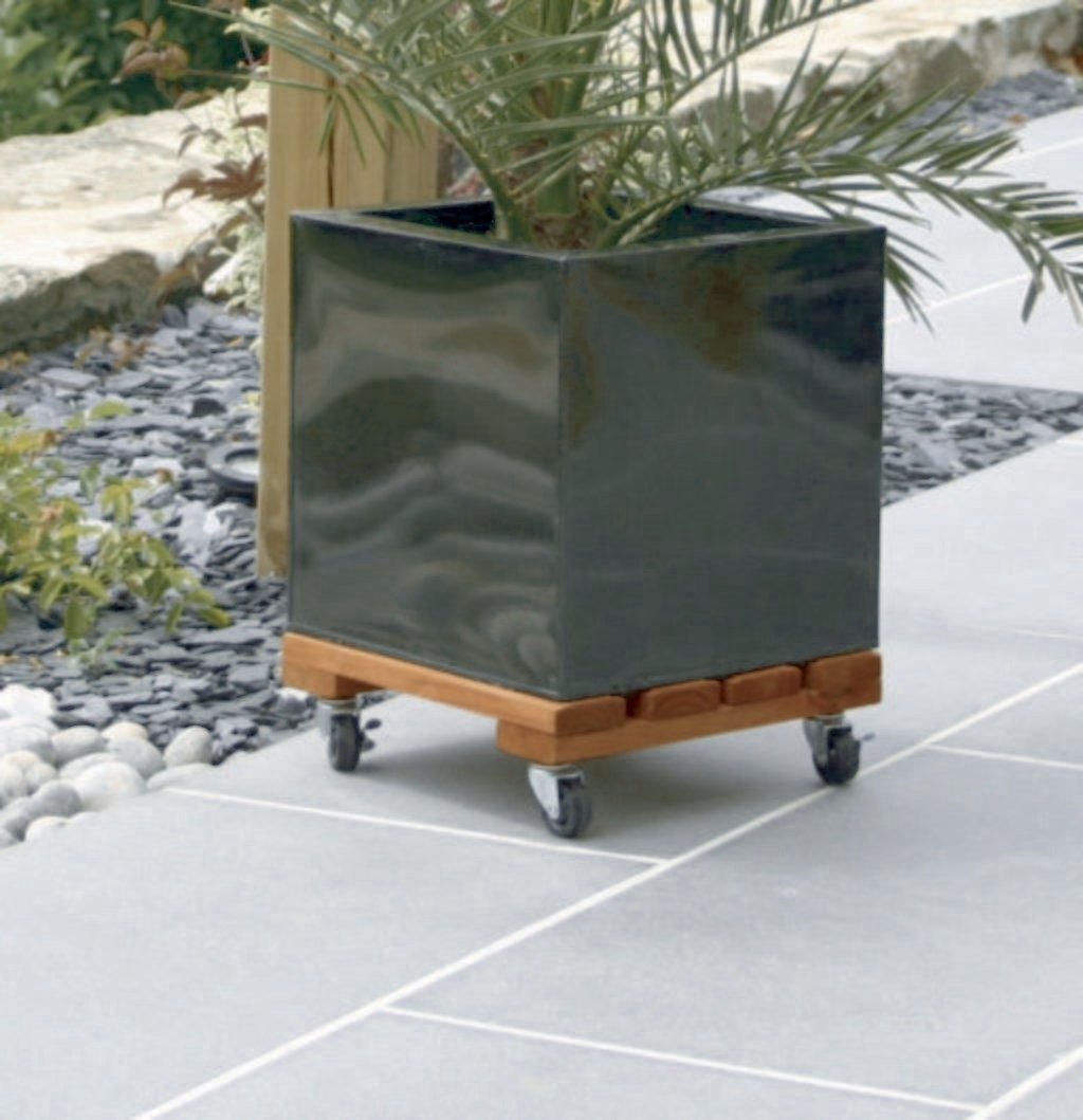 Support en bois équipé de 4 roulettes, dont 2 avec freins, pour déplacer les plantes sans effort. Caractéristiques :