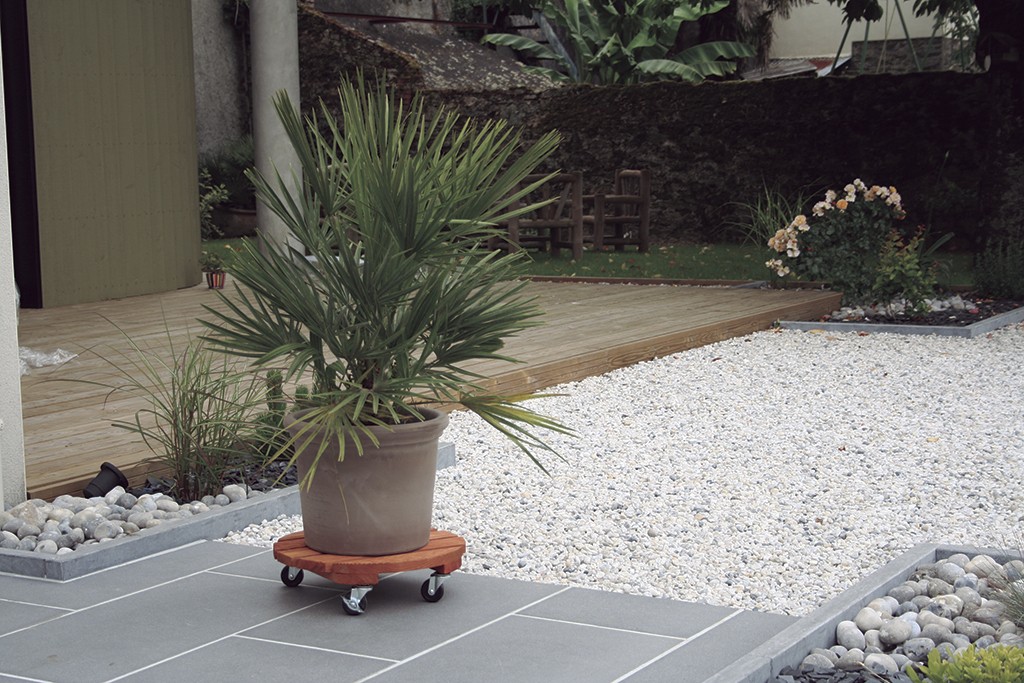 Support en bois équipé de 4 roulettes, dont 2 avec freins, pour déplacer les plantes sans effort. Caractéristiques :