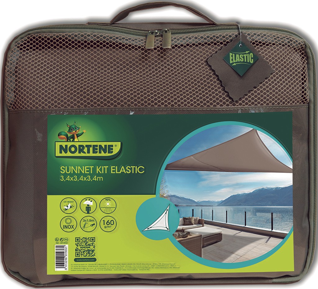 Couleur : marron taupe. - Fabriqué en polyester élastique. - Traitement anti-UV. - Poids : 160 g/m². - Pourcentage d’ombrage : 90 %. - Fourni avec des cordes pour l’installation. - Renforcé latéralement, avec des anneaux métalliques inoxydables. Acier inoxydable 316. - Fourni dans une petite valise.