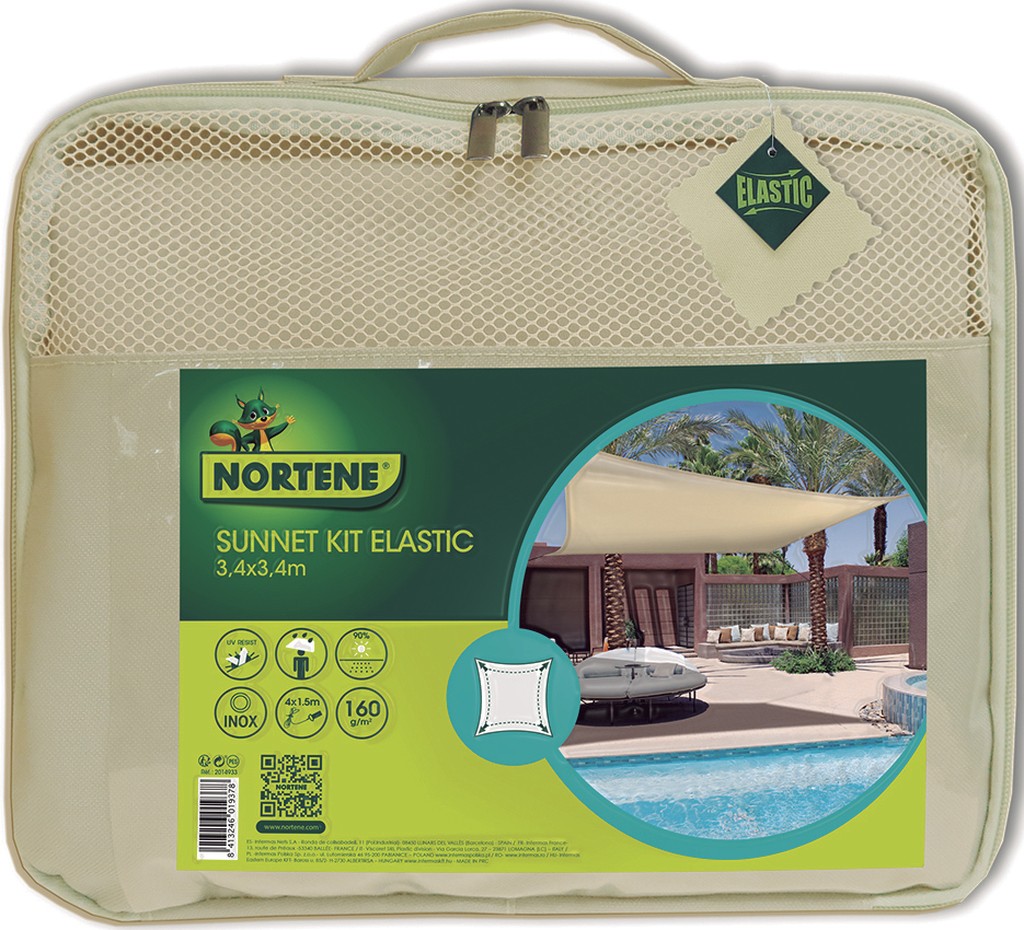 Couleur : marron taupe. - Fabriqué en polyester élastique. - Traitement anti-UV. - Poids : 160 g/m². - Pourcentage d’ombrage : 90 %. - Fourni avec des cordes pour l’installation. - Renforcé latéralement, avec des anneaux métalliques inoxydables. Acier inoxydable 316. - Fourni dans une petite valise.